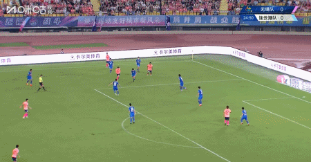 第38分钟,禁区右侧传中,徐毅头球攻门被门将扑出