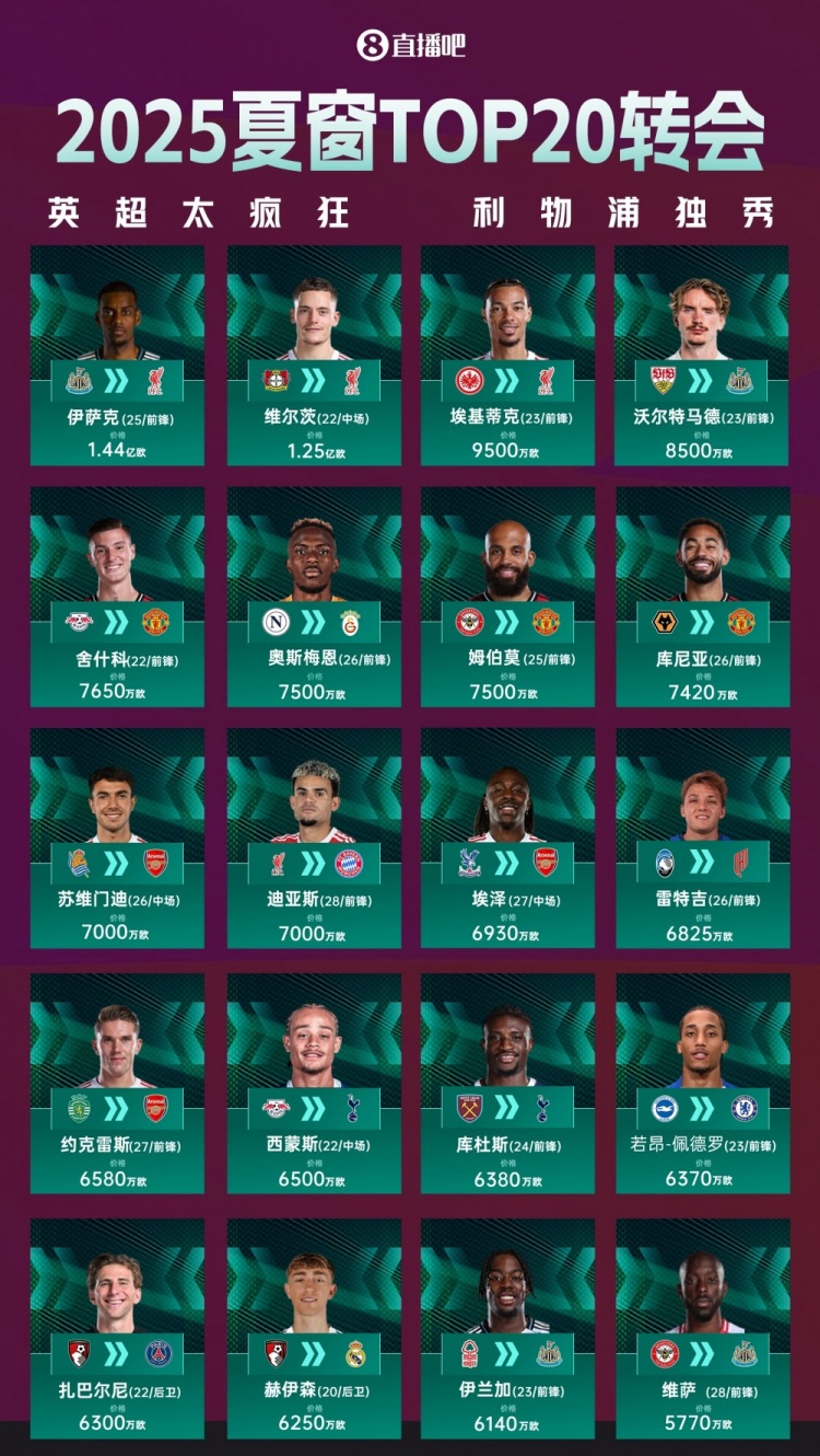 球员身价虚高到何种程度,从2025夏窗的疯狂中可见一斑。